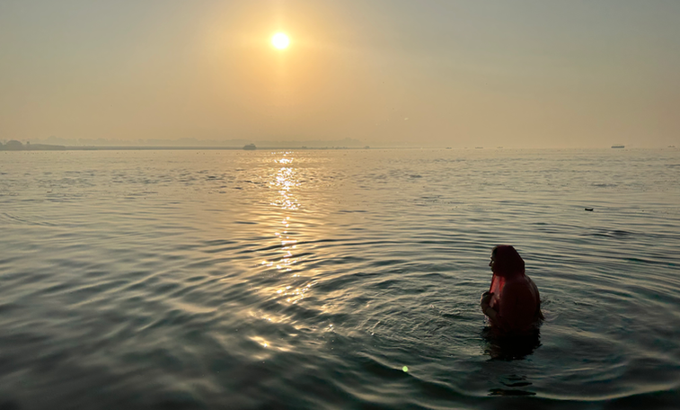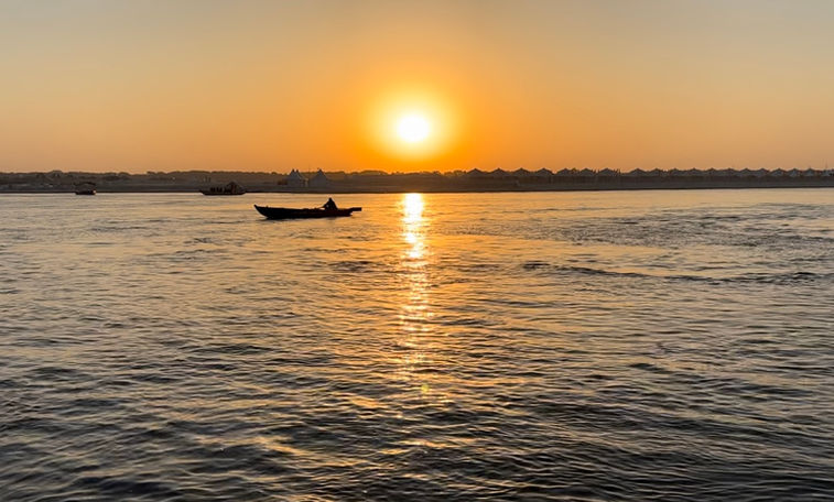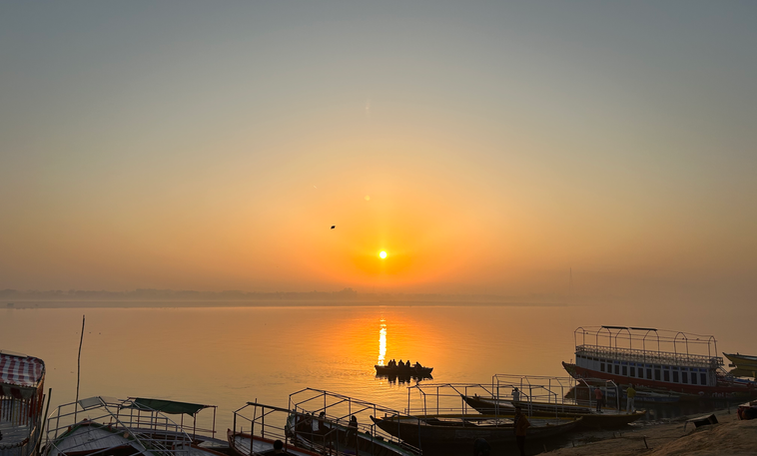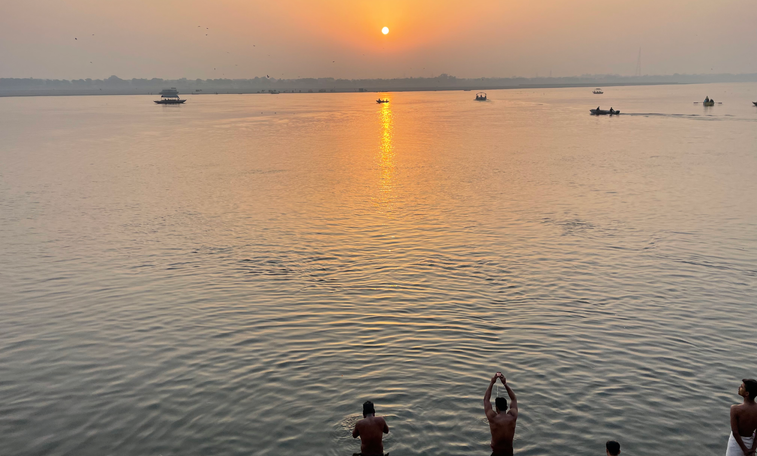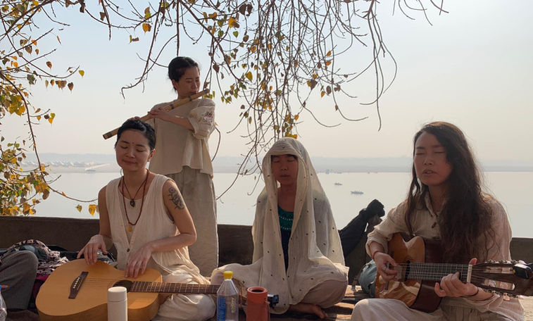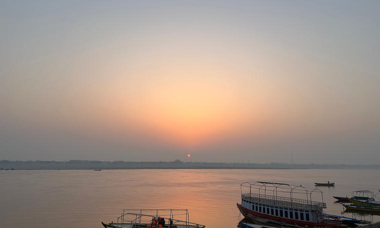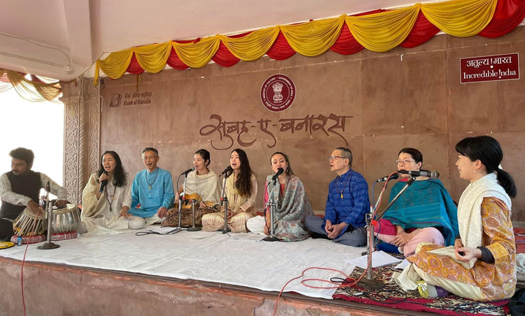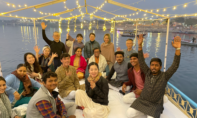 ◆ ガンジス船上での日の出とともに日の出のラーガを歌うWS